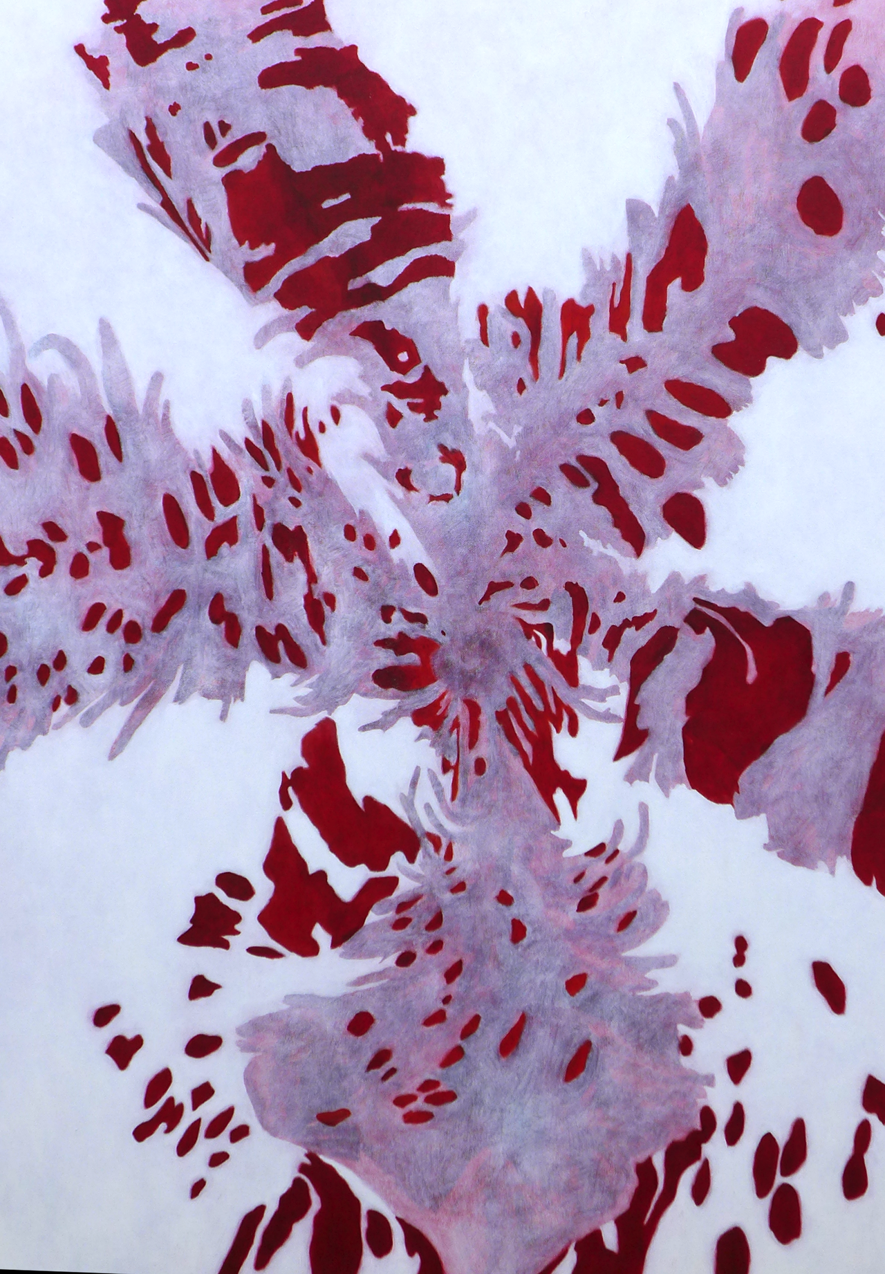 특히 식물의 반복되는 무늬와 구조는 나에게 인간 내면의 긴장과 균열을 떠올리게 한다. 그것은 하나로 고정된 형상이 아니라, 유기적으로 이어지면서도 때로는 무생적인 감각을 동반하는 모순된 상태에 가깝다. 이 이중적인 특성은 자아와 무의식, 의식적인 사유와 설명되지 않는 감각이 공존하는 인간의 내면과 닮아 있다. 나의 화면 속 식물은 자연의 재현이라기보다, 생각과 감정이 머물고 흐르는 내면의 상태를 드러내는 하나의 심리적 풍경이다.
