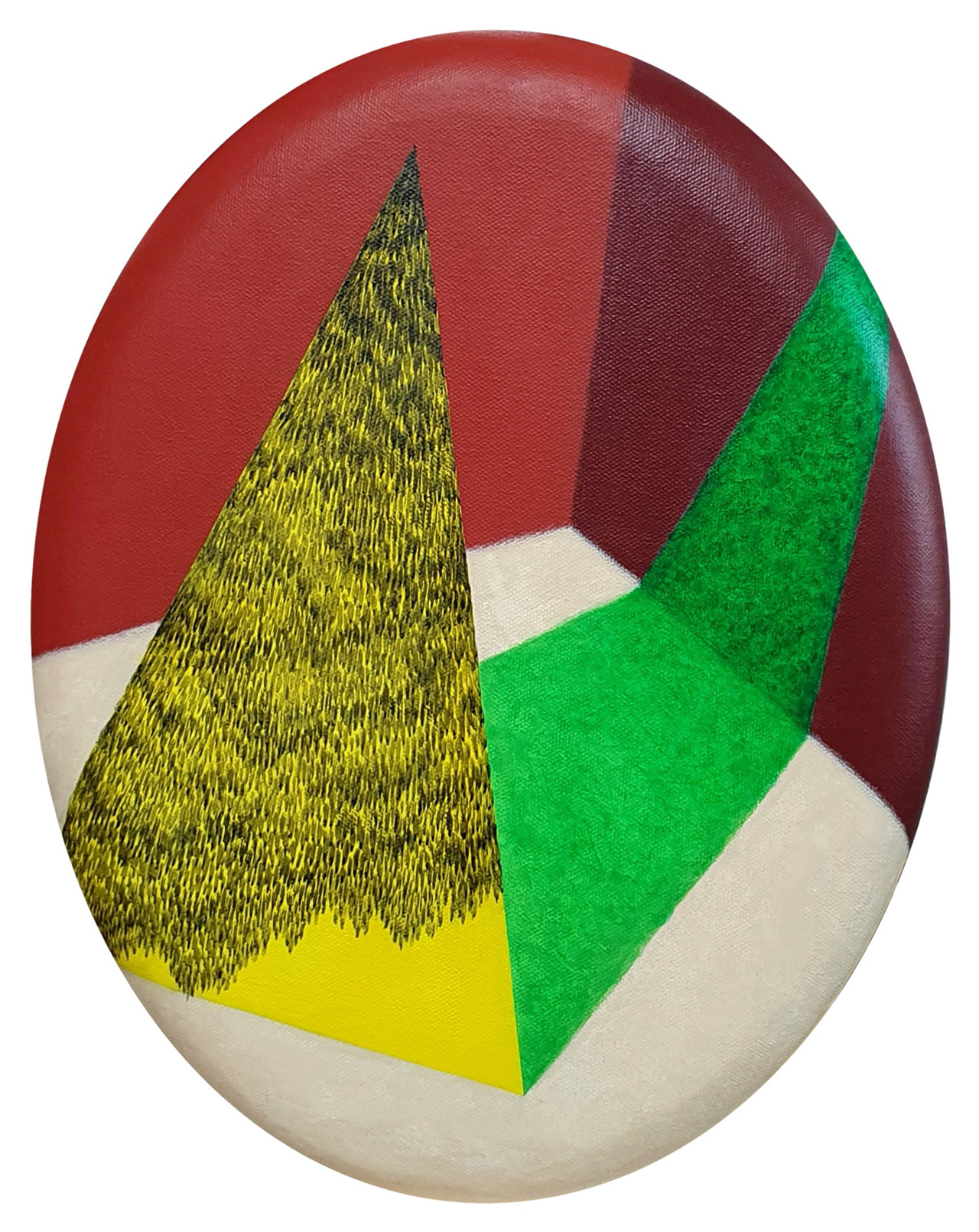 작업을 시작하기 전 2차원의 깨끗한 면은 어떤 상황이라도 벌어질 수 있을 것 같은 무한한 공간을 상상하게 한다. 그러나 납작한 면에 손을 대는 순간 표면의 질감, 물감의 점도, 움직임을 반영하는 형태들이 적나라하게 감각되면서 상상과 감각의 간극에서 혼란을 마주하고 불안감이 엄습한다. 혼란을 고스란히 안은 채 작업을 시작하면 상상의 전개와 물리적 감각이 삐그덕거리며 교차하기를 반복한다. 그러면 어느 순간 화면 안에서 그들만의 관계가 형성되고 처음에 느꼈던 간극은 어느새 연결고리가 되어 작업의 분위기를 주도한다. 그러면 나는 안도하는 동시에 자연스럽게 만들어져가는 그 분위기에서 고유한 에너지를 느낀다. 이렇게 매번 작업의 과정에서 기대하고, 혼란스럽다가, 안도하고, 신이 난다. 그리고 문득 또다시 어떤 종류의 경계를 발견하고는 그것을 어떻게 뒤섞고, 허물어볼까 상상한다.